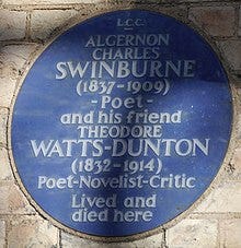 Swinburne was an alcoholic and algolagniac and highly excitable. He liked to be flogged. His health suffered, and in 1879 at the age of 42, he was taken into care by his friend, Theodore Watts-Dunton, who looked after him for the rest of his life at The Pines, 11 Putney Hill, Putney. Watts-Dunton took him to the lost town of Dunwich, on the Suffolk coast, on several occasions in the 1870s.
